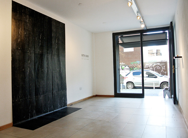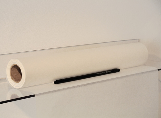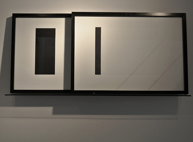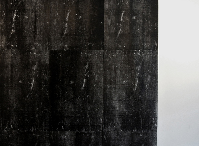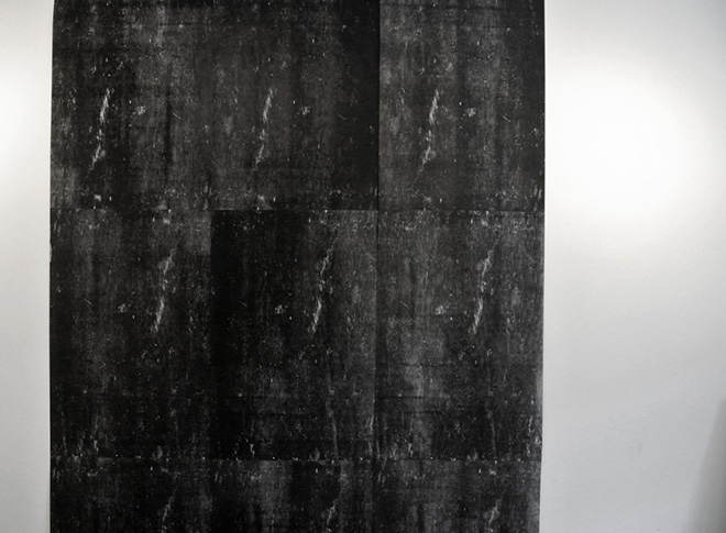 Su enorme telón negro la arrojó al pleno, madera, talla, huella, serie. La teatralidad de la obra en gran formato, suave papel, nos invitó, casi nos obligó a llenar el vacío, a empujones, violentamente. Las obras superpuestas nos ayudan a dejarnos perder algo, sí , perder, y una vez más Girardi nos propone no ver, no tener. O mejor, encontrar. Encontrar un rollo de papel en la calle, por ejemplo. ¿Por qué no? Todo es posible, dice.